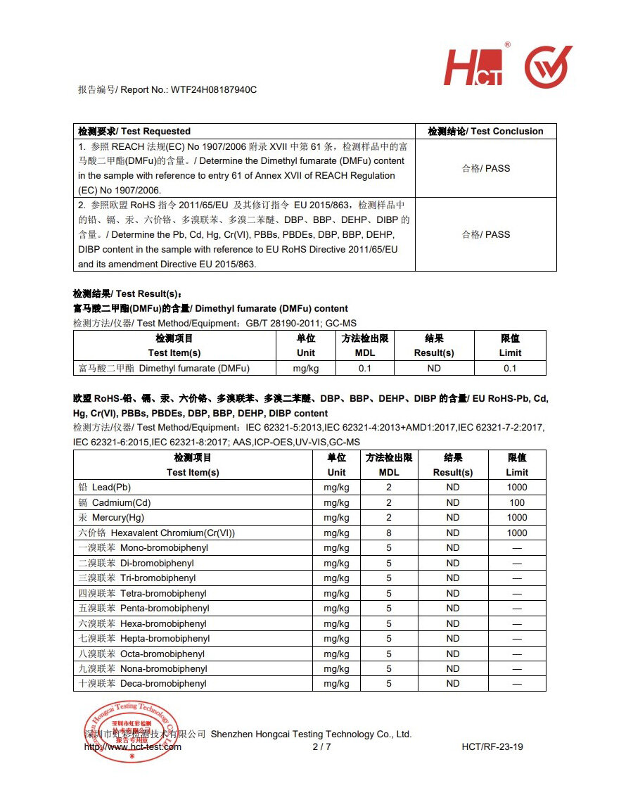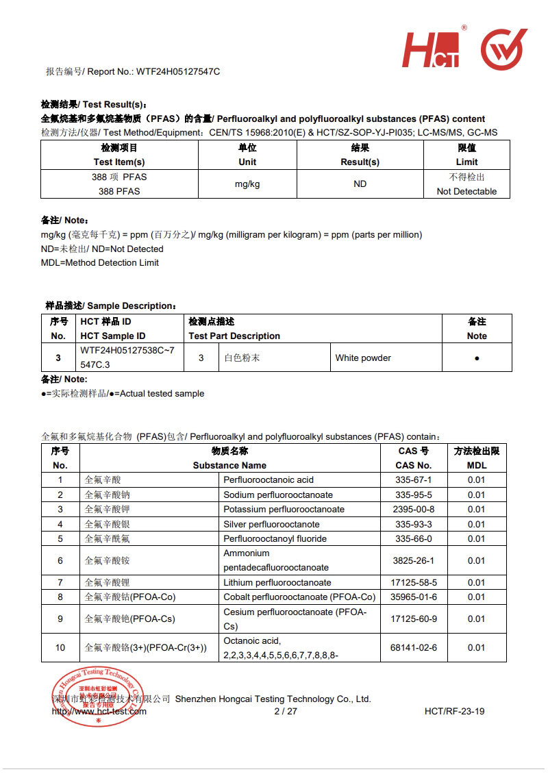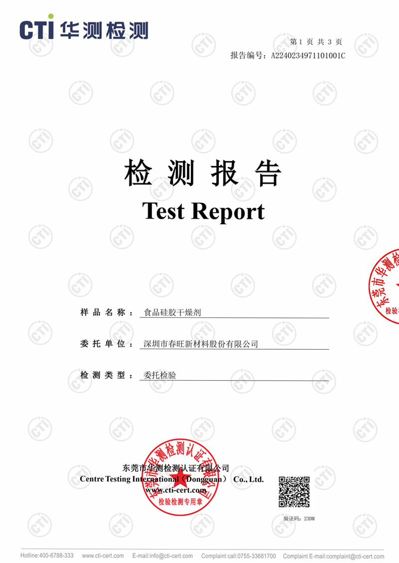 檢測報告 DMF證書 食品級硅膠干燥劑報告 海運鑒定報告 鐵路運輸鑒定報告 航空鑒定報告 干燥劑性能指標檢測報告 REACH249項檢測報告 食品用脫氧劑檢測報告 德國PAHs檢測報告 PFAS388項檢測報告 POPs29項檢測報告 REACH報告 RoHS檢測報告 SVHC檢測報告 加州65檢測報告 鄰苯26檢測報告 鹵素4項檢測報告 歐盟包材檢測報告 DMFu檢測報告 SVHC240檢測報告 想要了解更多信息? 如有任何問題,歡迎通過多種方式與我們聯系,我們將竭誠為您服務。 聯系我們 當前位置: 網站首頁 9 關于我們 9 檢測報告